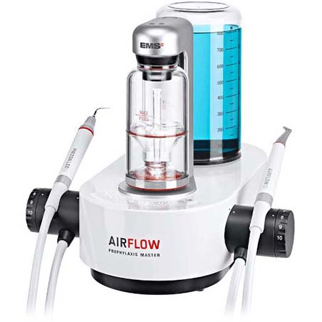 粘性のある細菌膜(バイオフィルム)を可視化できるよう染出し、エアフローによって汚れを除去します。抗菌剤や消毒剤、研磨剤を使わないため、歯や歯肉を傷つけることがありません。また、治療にかかる時間が短縮され、患者さまへの負担を大幅に軽減することができます。